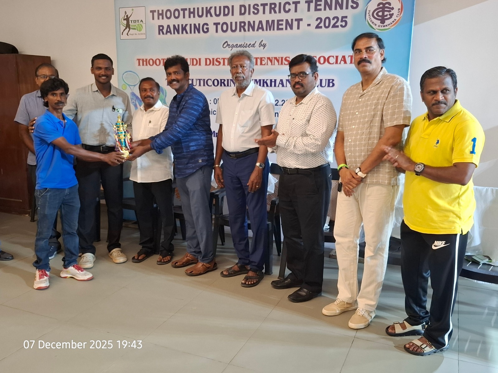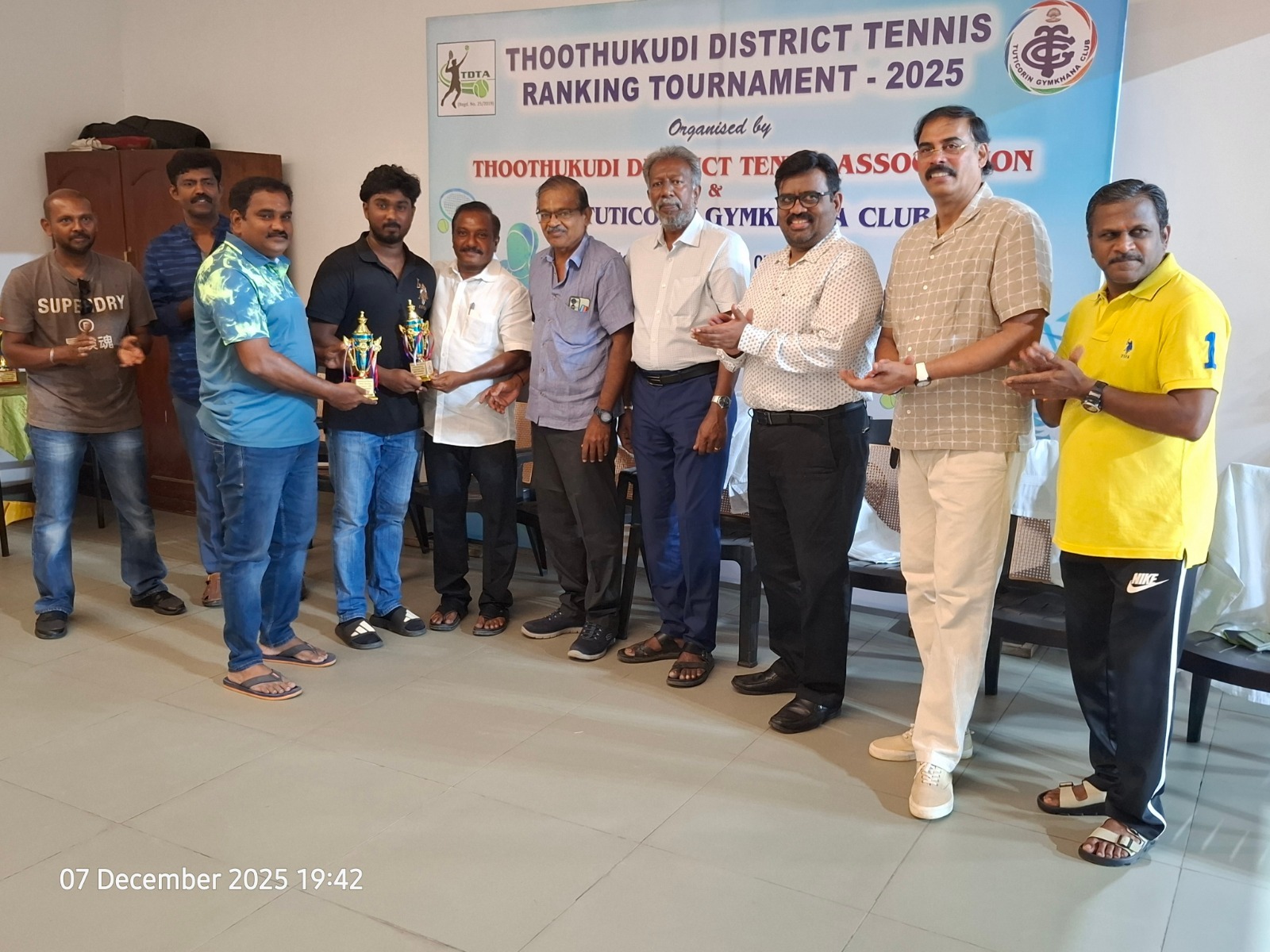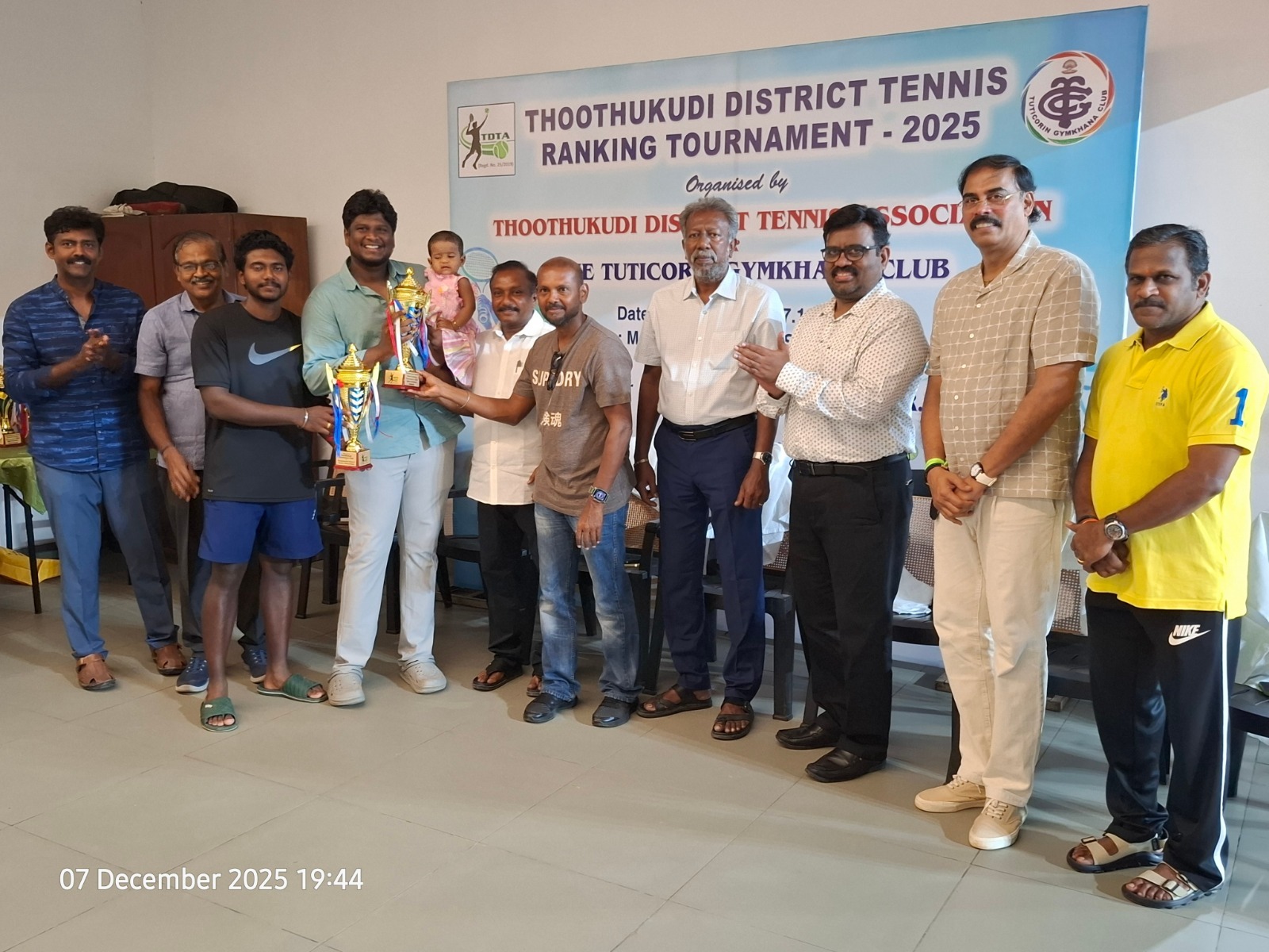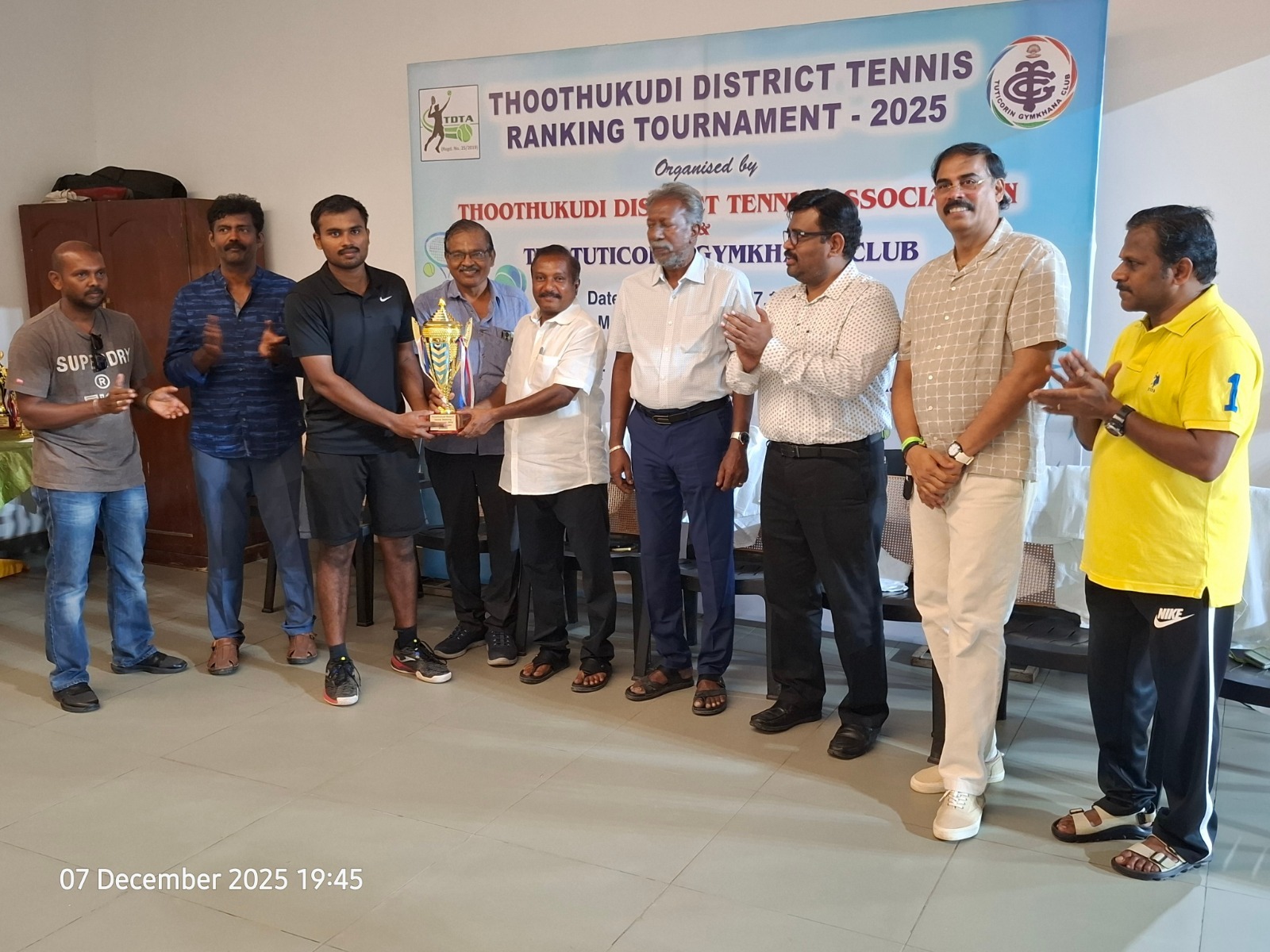 The Tuticorin Gymkhana Club & The Thoothukudi District Tennis Association jointly conducted Thoothukudi District Tennis Ranking Tournament for U-12 yrs, U-16 yrs (Boys & Girls) Men Singles, Men Doubles & 45+ Doubles from 05.12.2025 to 07.12.2025 @ Shri Manikam Memorial Synthetic Tennis Flood Light Court.