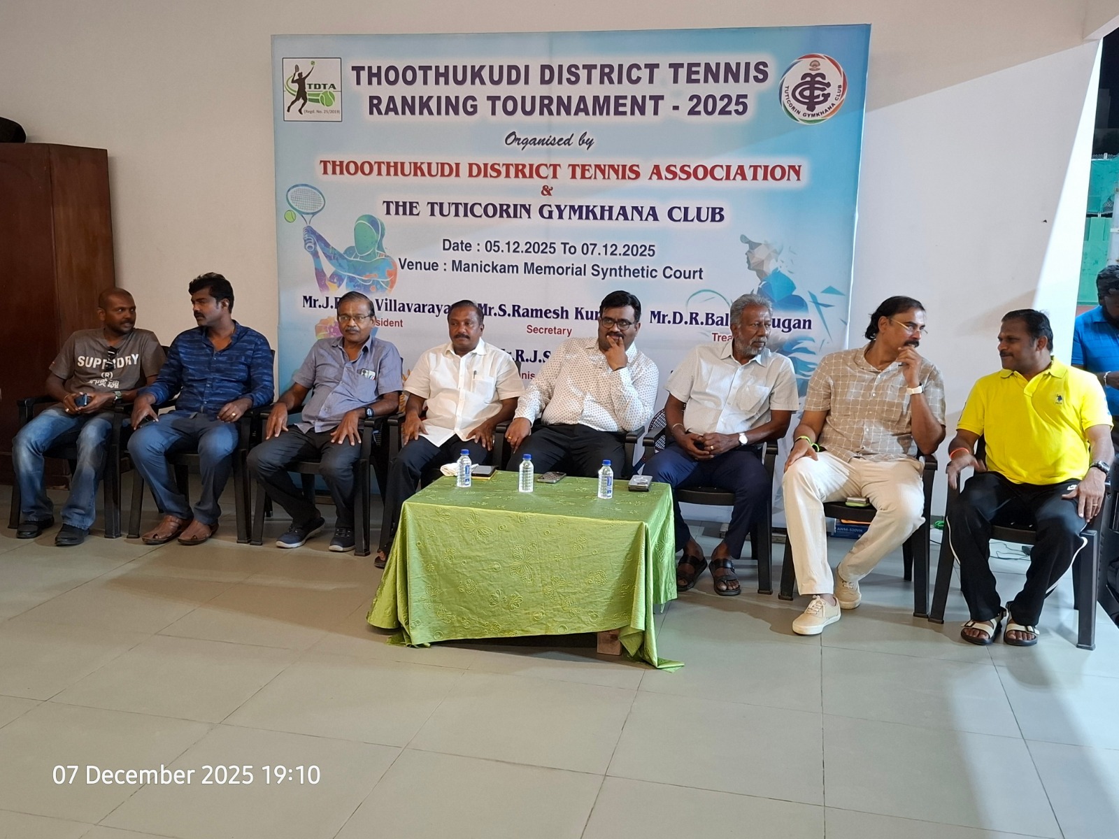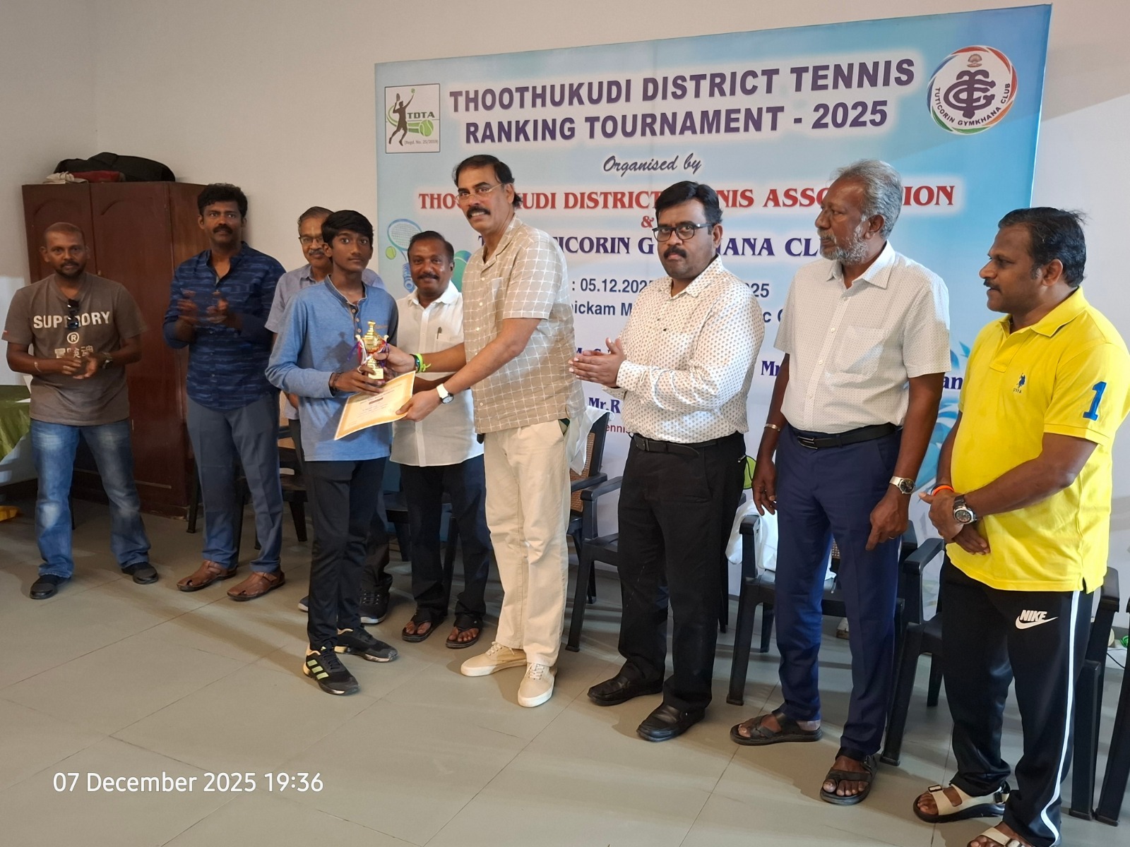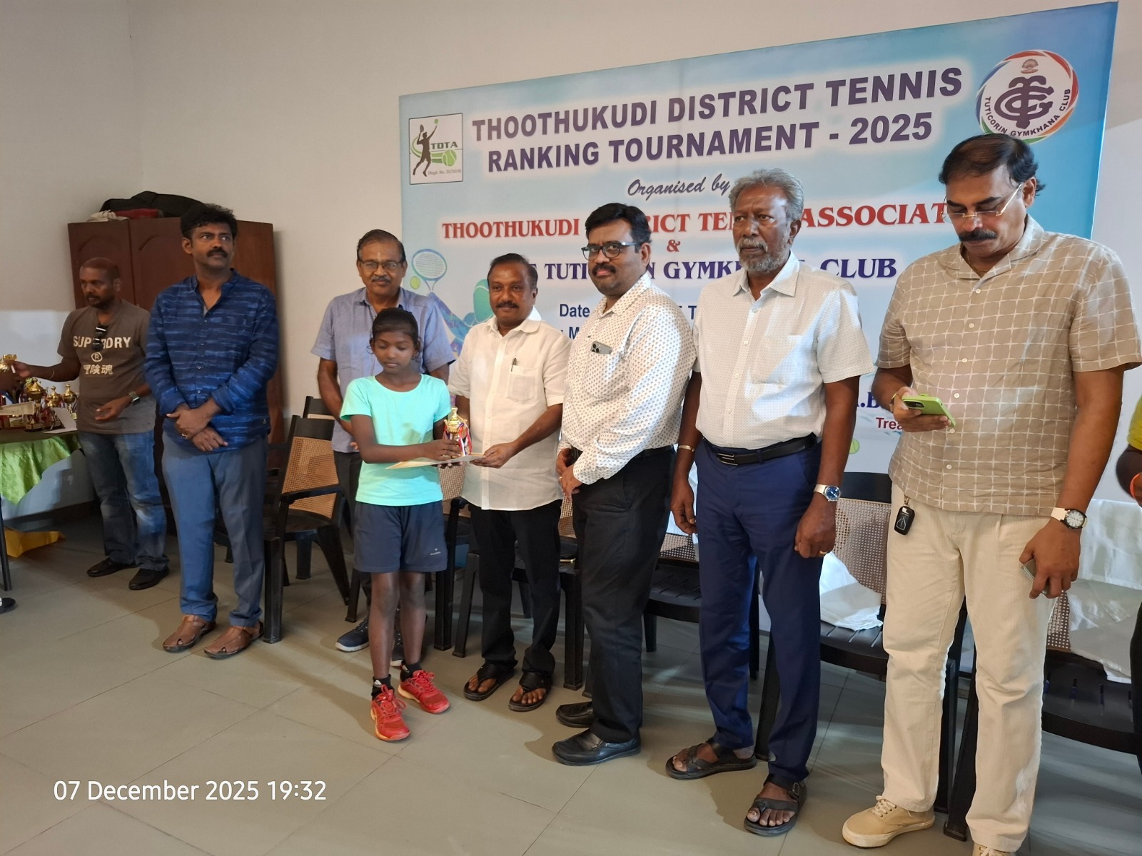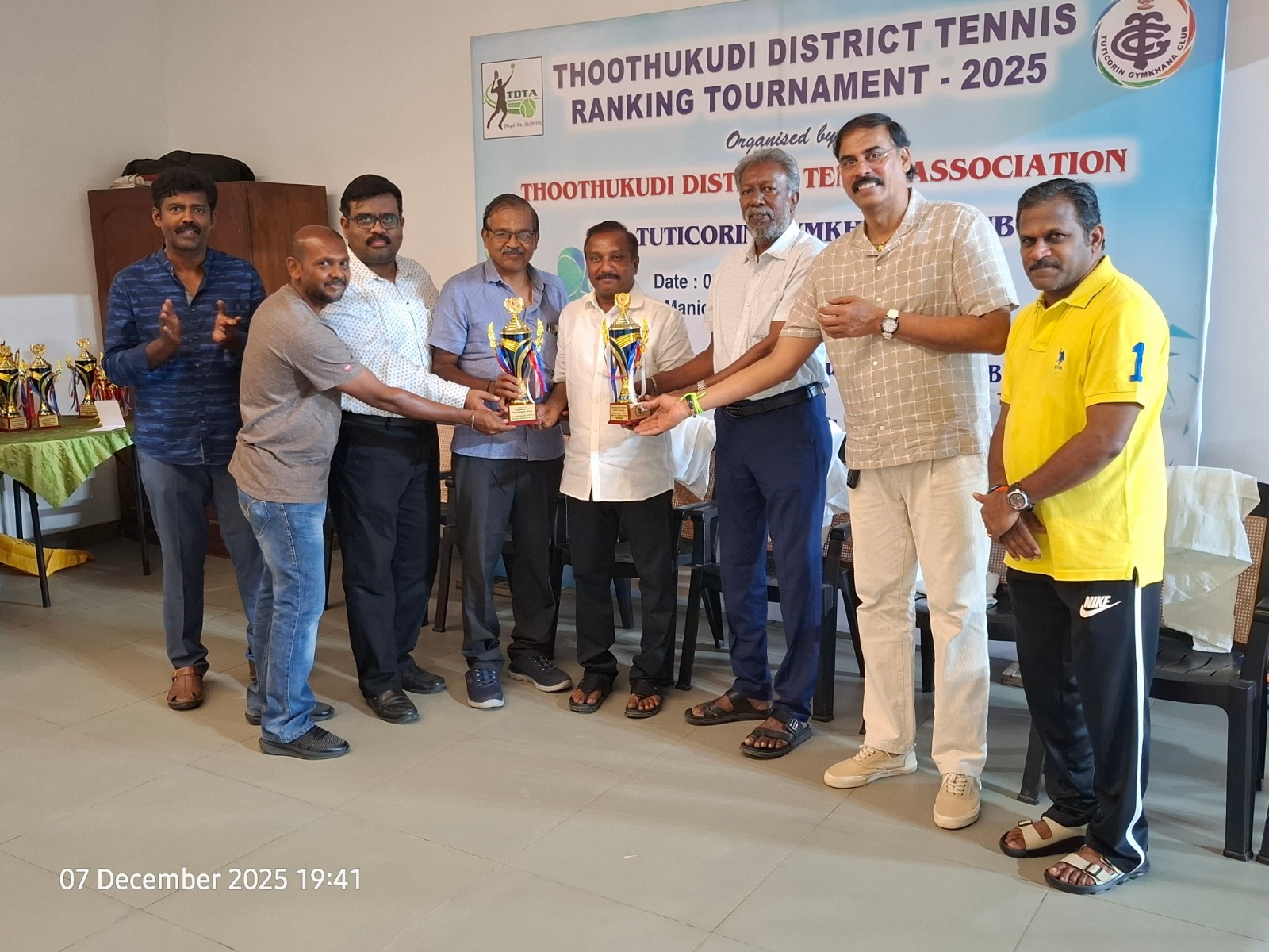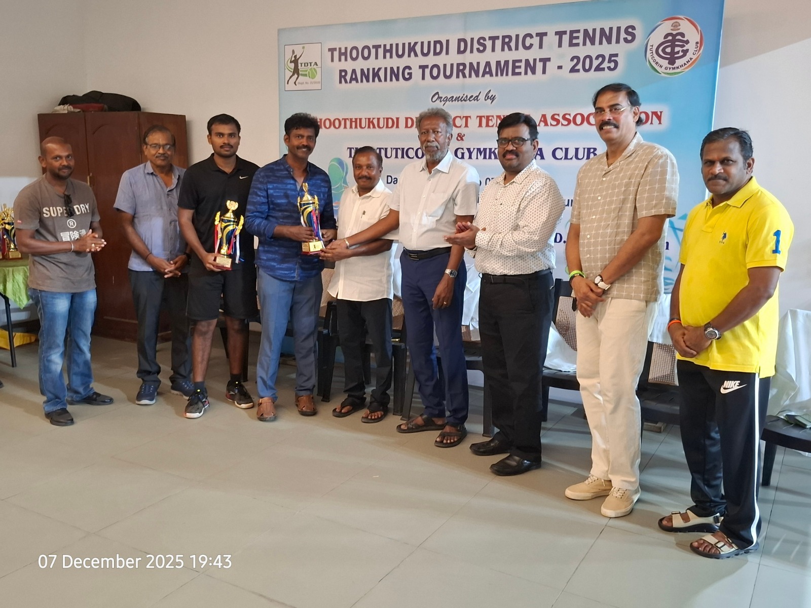 The Tuticorin Gymkhana Club & The Thoothukudi District Tennis Association jointly conducted Thoothukudi District Tennis Ranking Tournament for U-12 yrs, U-16 yrs (Boys & Girls) Men Singles, Men Doubles & 45+ Doubles from 05.12.2025 to 07.12.2025 @ Shri Manikam Memorial Synthetic Tennis Flood Light Court.