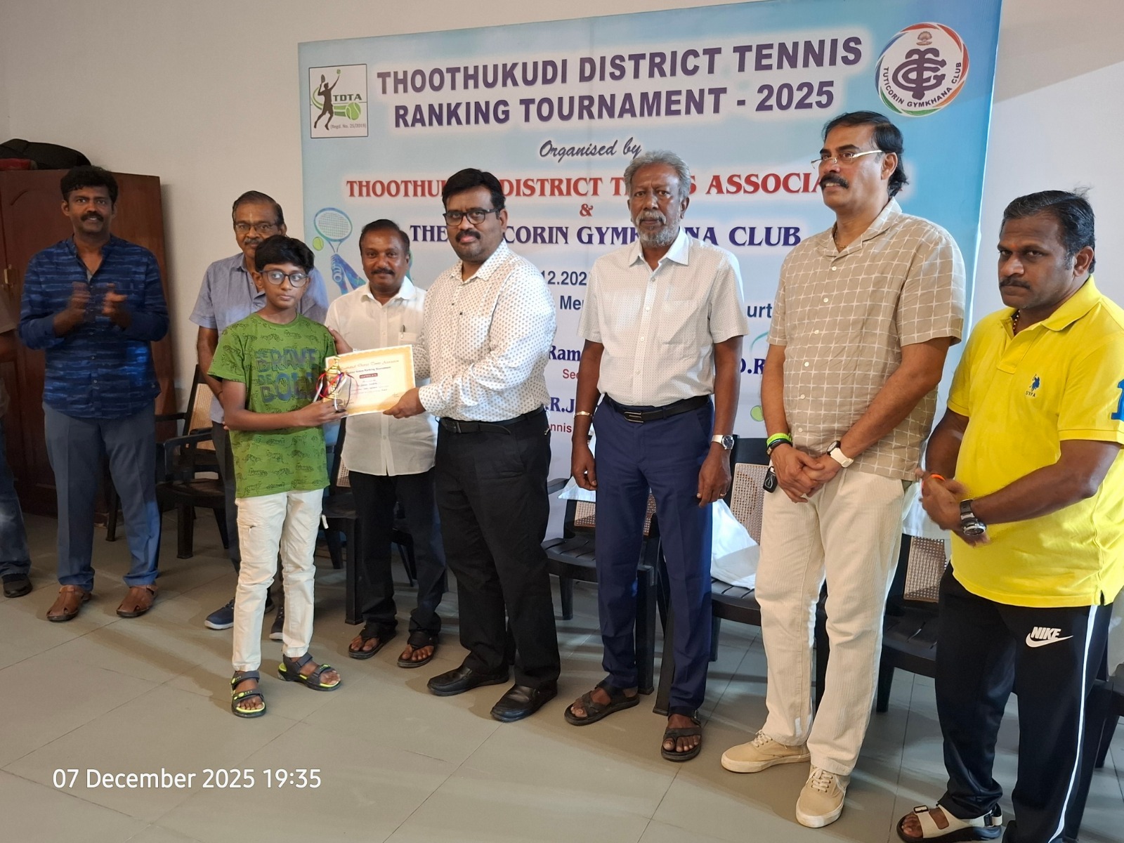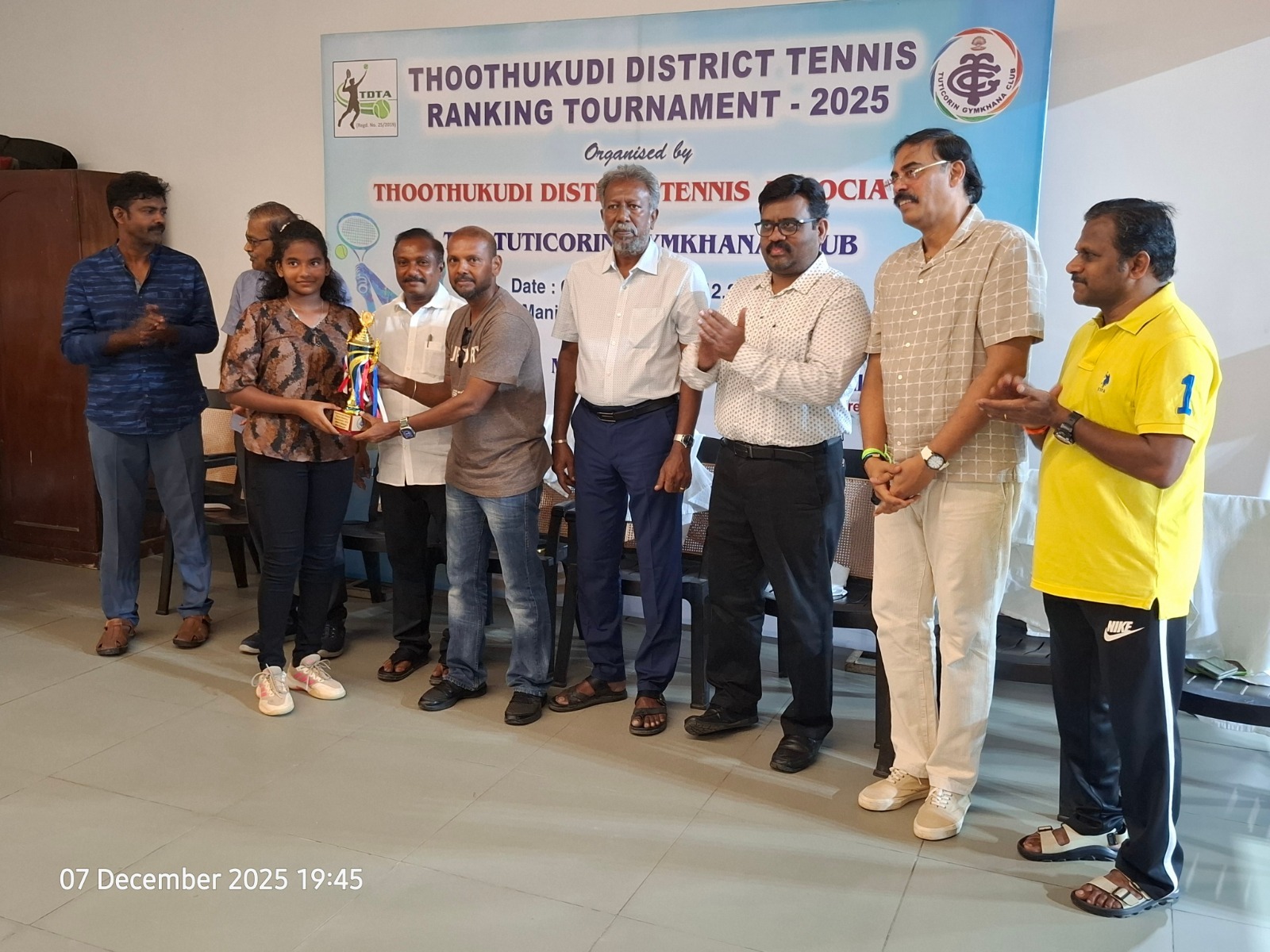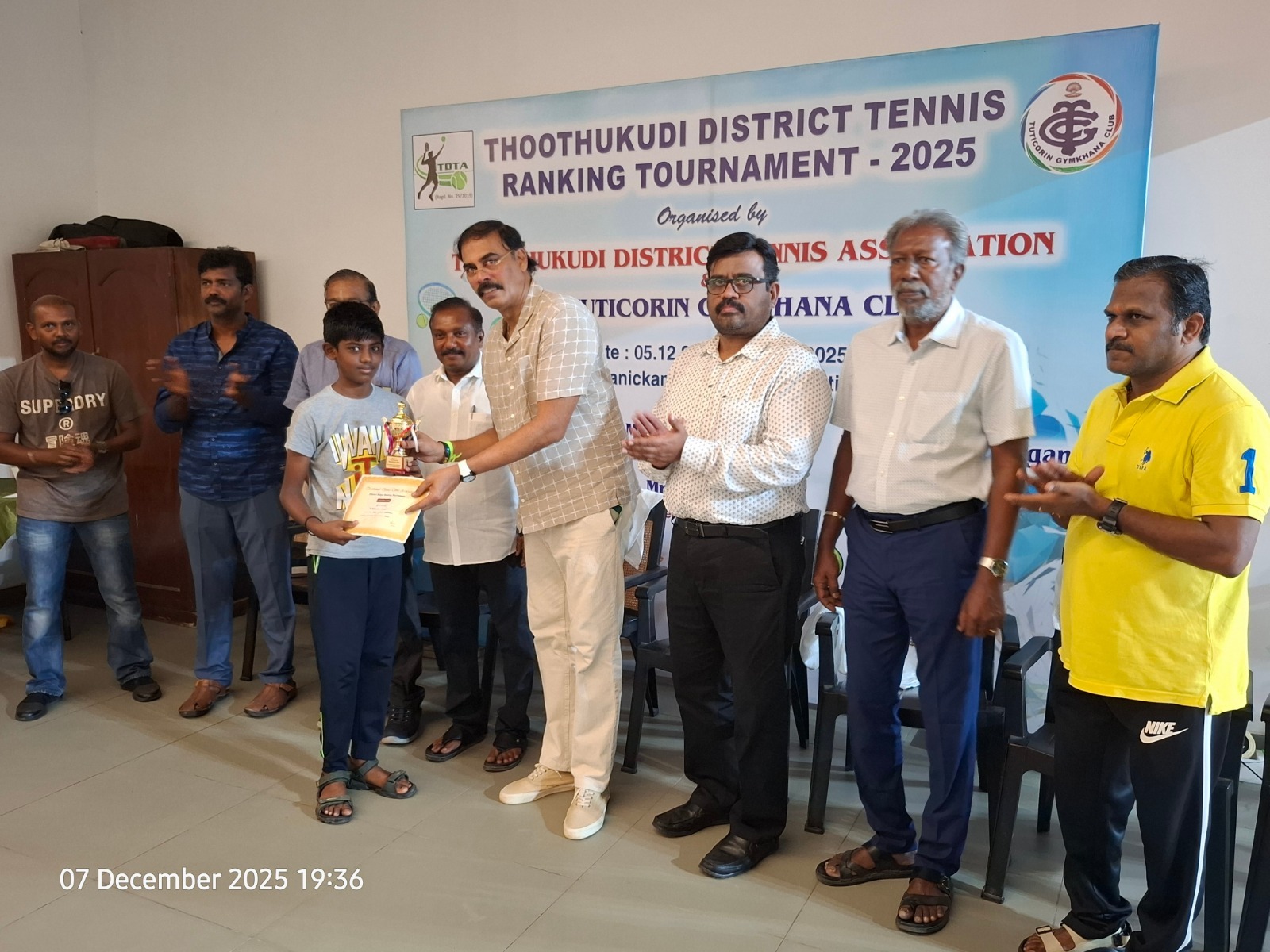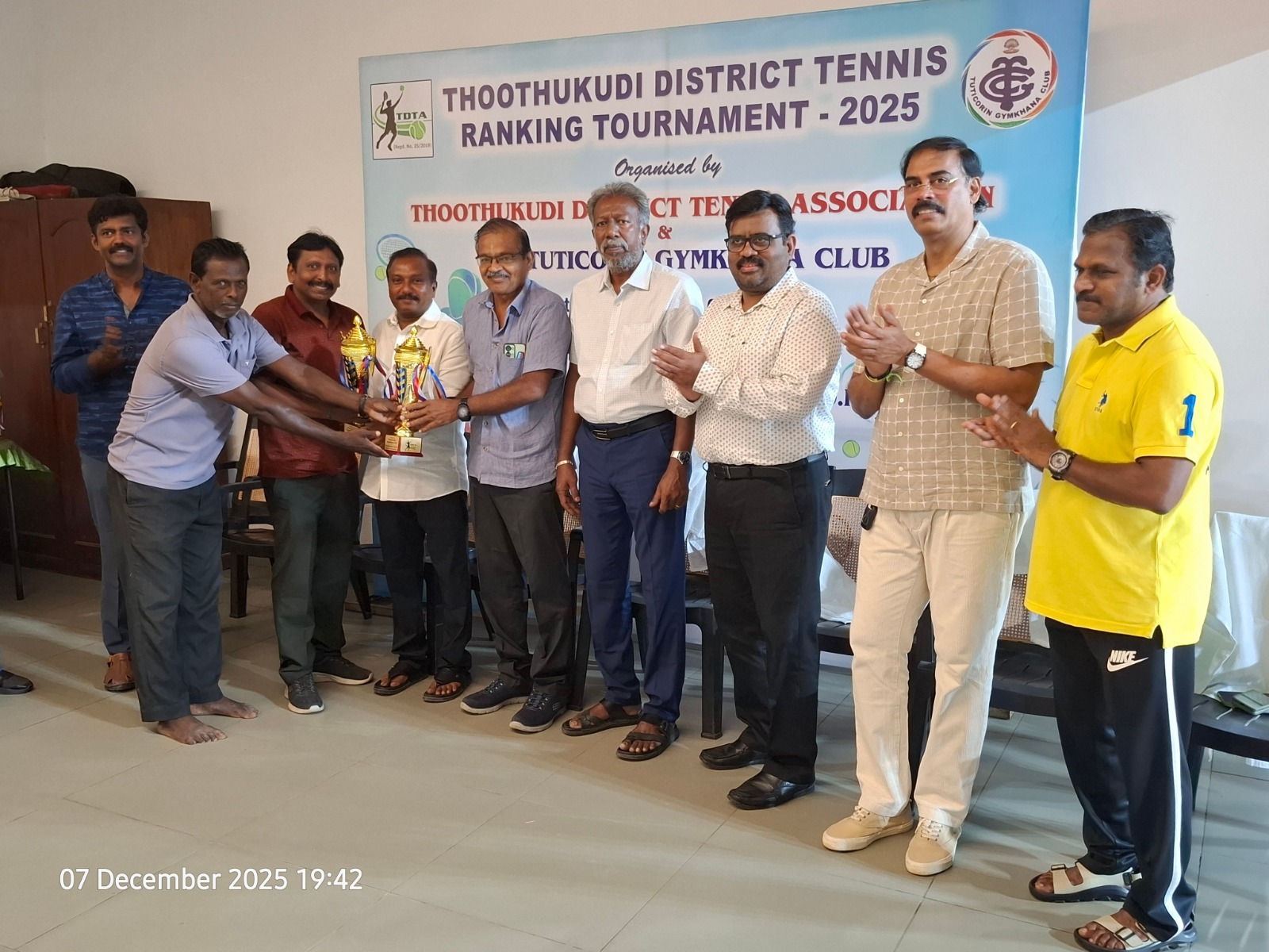 The Tuticorin Gymkhana Club & The Thoothukudi District Tennis Association jointly conducted Thoothukudi District Tennis Ranking Tournament for U-12 yrs, U-16 yrs (Boys & Girls) Men Singles, Men Doubles & 45+ Doubles from 05.12.2025 to 07.12.2025 @ Shri Manikam Memorial Synthetic Tennis Flood Light Court.