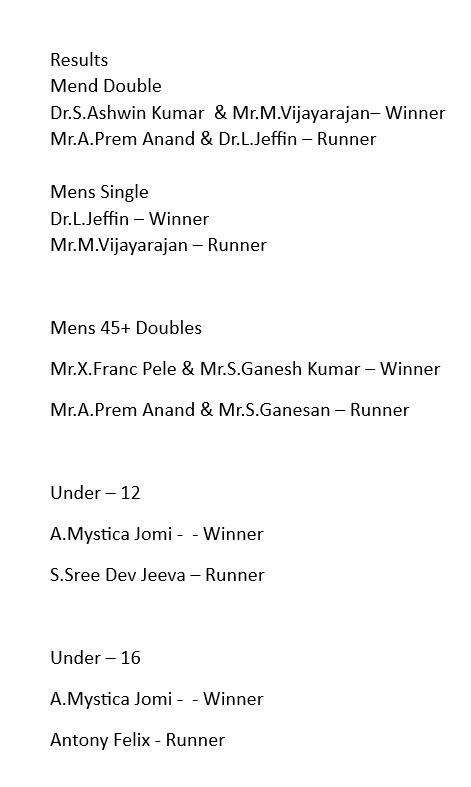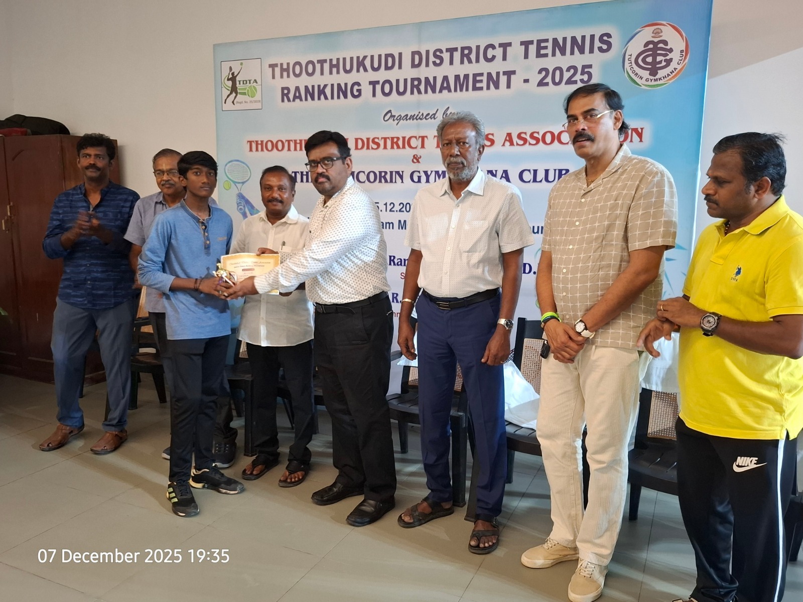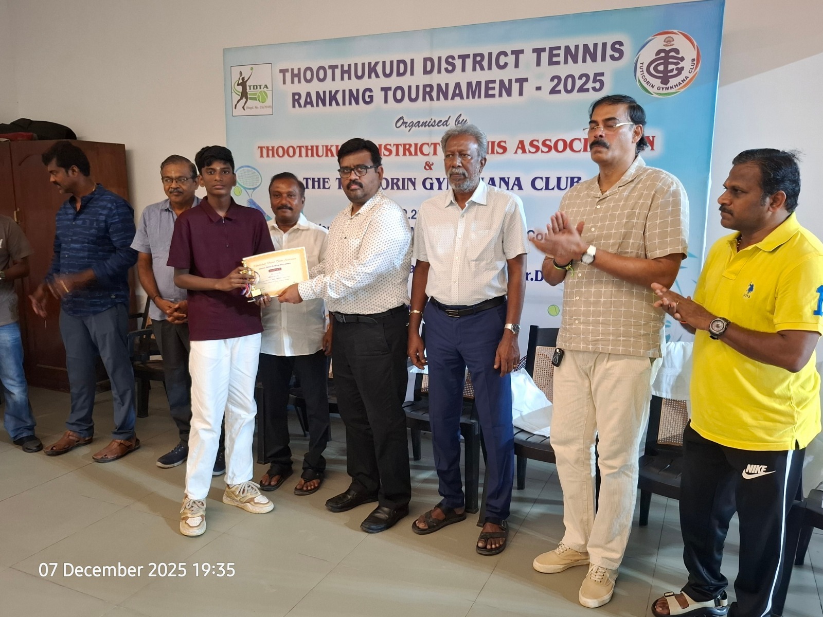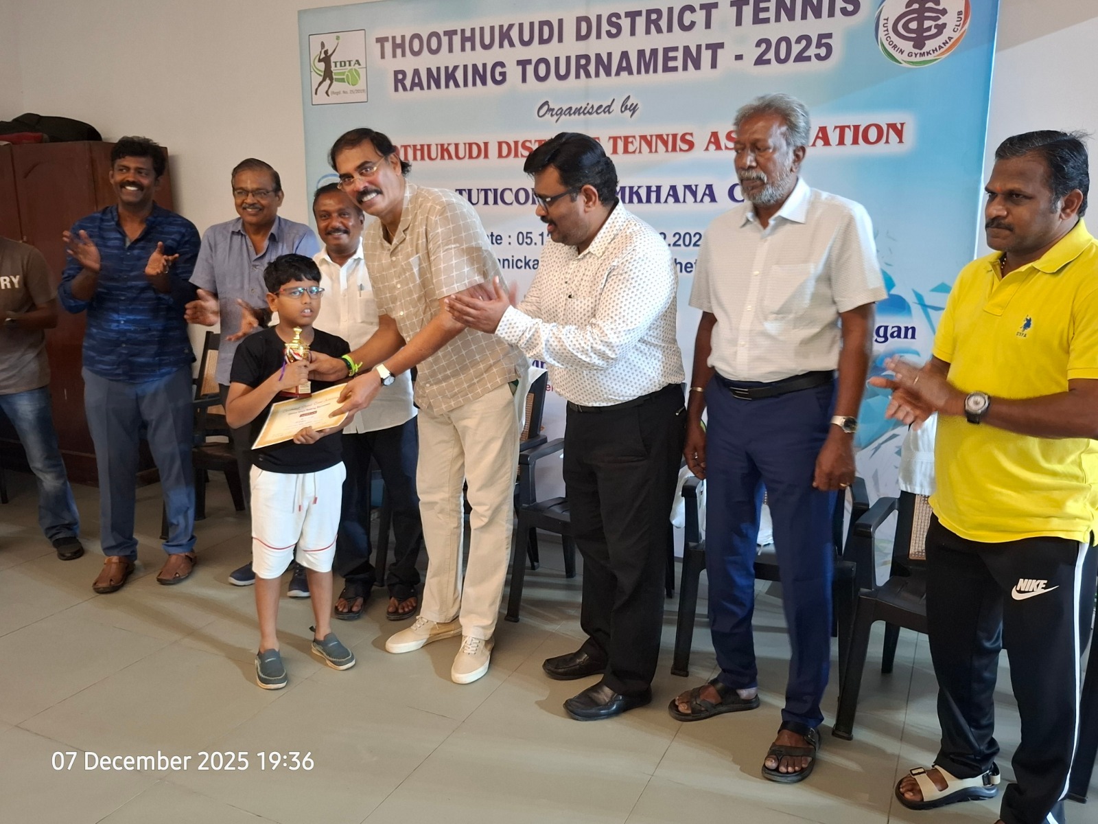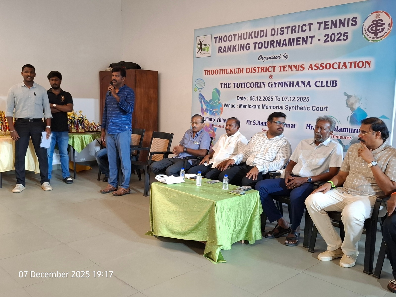 The Tuticorin Gymkhana Club & The Thoothukudi District Tennis Association jointly conducted Thoothukudi District Tennis Ranking Tournament for U-12 yrs, U-16 yrs (Boys & Girls) Men Singles, Men Doubles & 45+ Doubles from 05.12.2025 to 07.12.2025 @ Shri Manikam Memorial Synthetic Tennis Flood Light Court.